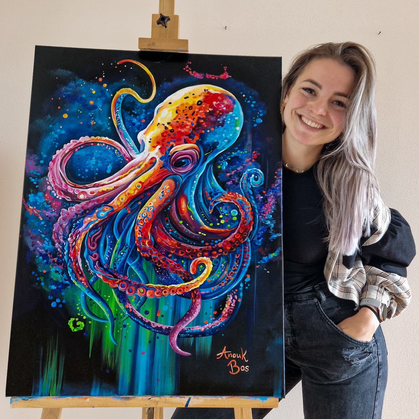 Hoi! Ik ben Anouk. En ik schilder dingen waar ik blij van word, dingen die me intrigeren of die ik mooi vind om te zien. En gelukkig is dat ontzettend veel, dus ik ben nog wel even bezig.