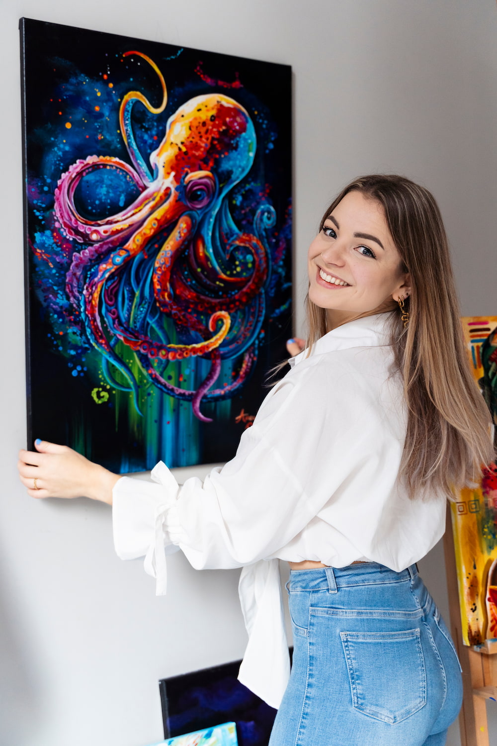 Dat doe ik niet alleen op doek, maar ook op bijvoorbeeld vinyl, muziekinstrumenten en kerstballen. Dus neem vooral een kijkje tussen mijn werk. Hopelijk word jij er ook blij van.