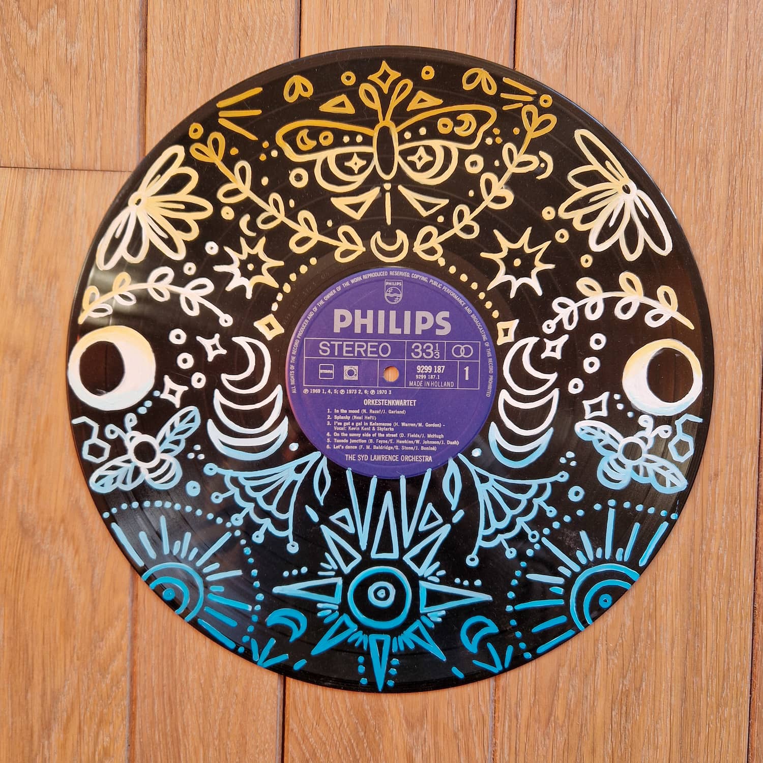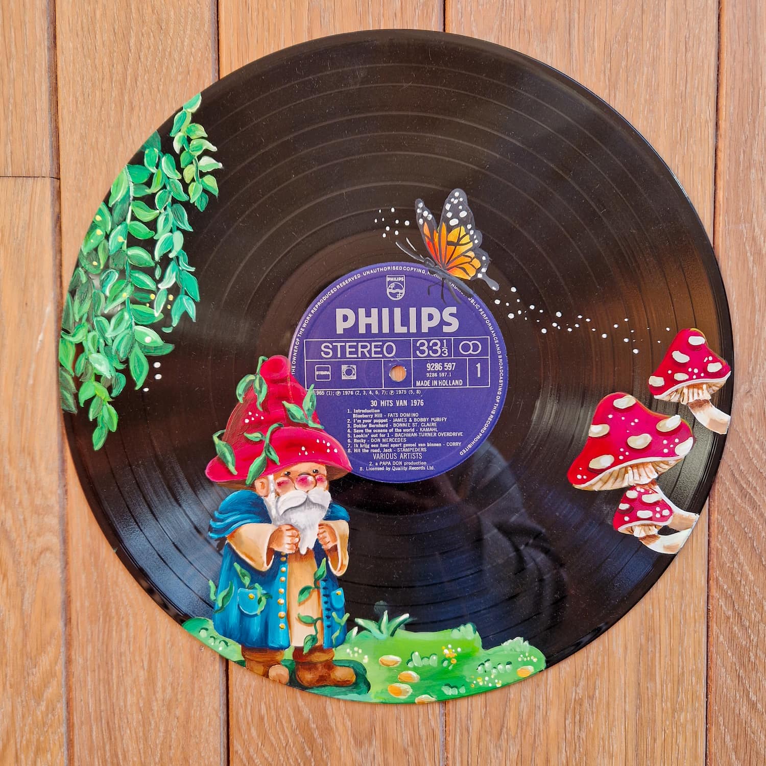 Vinyl heeft karakter. En schilderijen ook. Daarom leek het me tof om die twee te combineren. En wat bleek: het werkt nog eens goed ook. Daarom voorzie ik LP’s met oude meuk (tenzij je schlager geen oude meuk vindt, excuses) van een toffe schildering. Uiteraard niet om te draaien, maar gewoon om naar te kijken.